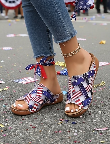 Sneakers slip-on patriottiche da donna: comode e traspiranti scarpe verdi in mesh con motivo a bandiera americana per sfilate, 4 luglio, 250° anniversario degli Stati Uniti e celebrazioni nazionali