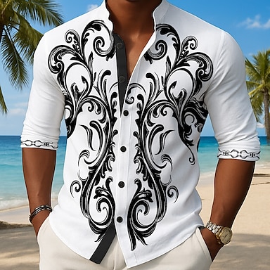 Per uomo Rotellina Stampa Floreale Etnico Camicia Camicia Western Camicia da cowboy Manica Lunga Vintage Retrò All'aperto Vacanza Primavera Autunno Collo ripiegato Stampa 3D Camicia tipo lino Bianco
