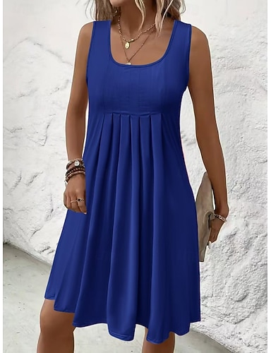 Per donna Mini Abito Abito Estivo Casual Quotidiano Vestibilità comoda Semplice Senza Maniche Collo a U Nero Blu reale Viola Verde Estate