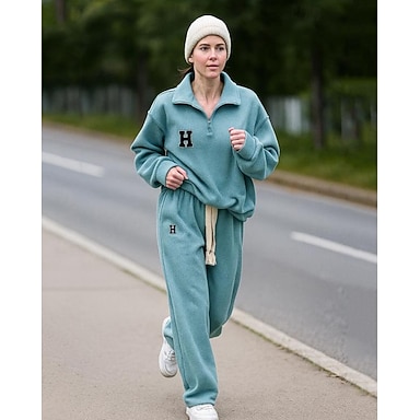 Per donna Set tuta pullover Tute casual Set da salotto da 2 pezzi Gamba larga Tinta unita Completo Abbigliamento Primavera Autunno Nero Verde militare All'aperto Viaggio Jogging Manica Lunga Sport