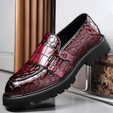 mocassini da uomo in similpelle bordeaux con fibbia decorativa: scarpe slip-on di lusso per occasioni eleganti e feste