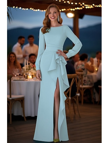 Tubino Colonna Lunghezza al pavimento Abito Formale Abito da sera Abiti da Ballo Abito da Sera Da principessa Abito formale Elegante Spacco Alto Manica Lunga Scollo a Barca Matrimonio Formale con