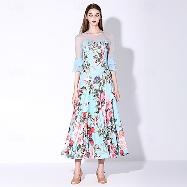 Linea ad A Lunghezza Tè Vestito Casual Abito Formale Abito da cerimonia per signora Manica 3/4 Scollo a V Elegante Pastello Formale Crêpe con Volant Balze a cascata