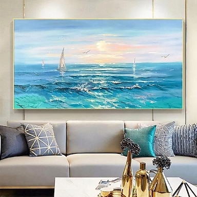 Dipinto a olio su tela extra large fatto a mano con vista sul mare blu, arte da parete fatta a mano, rilassante dipinto astratto con vista sul mare per camera personalizzata, azzurro & opera d'arte