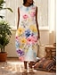 Per donna Abito Midi Abito a Tubino Vacanza Casual Boho Vestibilità regolare Floreale Grafico Mezza Manica Girocollo Blu Giallo Rosa Verde Estate Primavera