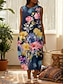 Per donna Abito Midi Abito a Tubino Vacanza Casual Boho Vestibilità regolare Floreale Grafico Astratto Mezza Manica Girocollo Blu Rosso Viola Estate Primavera