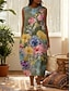 Per donna Abito Midi Finto cotone e lino Abito Boho Abito a Tubino Vestito Estivo Vintage Quotidiano All'aperto Vacanza Vestibilità regolare Floreale Senza Maniche Girocollo Rosa Verde militare Blu