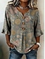 Per donna Camicia Arricciato Stampato Floreale Grafico Vacanza Casual Boho Manica Corta Mezza Manica Girocollo Top lunghi Casuale Quotidiano Blu Giallo Verde scuro Grigio Estate Primavera