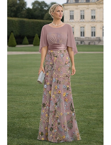 Tubino Colonna Lunghezza al pavimento Vestito da Festa Abito da Cocktail Abito da invitata a nozze Abito da cerimonia per signora Mezza Manica Collo gioiello Elegante Taglie Forti Ospite di nozze