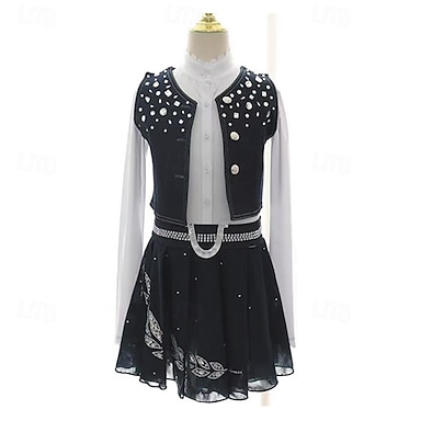 Abito da pattinaggio artistico Per donna Ragazze Pattinaggio sul ghiaccio Vestito Nero Patchwork Foro per il pollice Spandex Rete Elasticizzato Allenamento Professionale Competizione Vestiti da