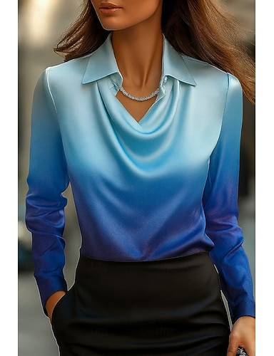 Linea ad A Lunghezza al pavimento Abito Camicia Abito Formale Abito da sera Abito da cerimonia per signora Manica Lunga Colletto a Camicia Elegante Vintage Formale Raso Jacquard con Fiocco/Fiocchi