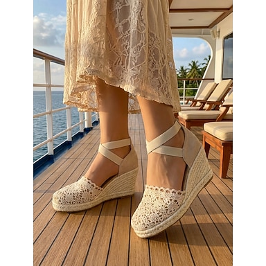 sandali con zeppa espadrillas in pizzo all'uncinetto da donna - scarpe con plateau chiuse in stile vintage con cinturini alla caviglia, ideali per matrimoni estivi in spiaggia e feste in giardino