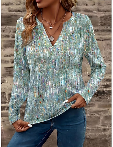 Per donna Maglietta Taglio Stampato Grafico Animale Tartaruga di mare Vintage Elegante Classico Manica Lunga Scollo a V Top Regolari Quotidiano Blu Rosso Fucsia Verde Primavera Autunno