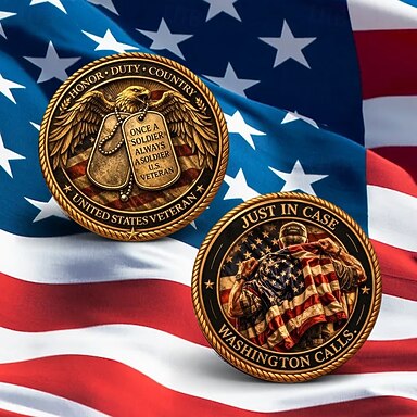 Moneta commemorativa per veterani statunitensi, onore al dovere verso la patria, oggetto da collezione militare patriottico, tributo ai soldati statunitensi, regalo di ispirazione per veterani e famiglie.
