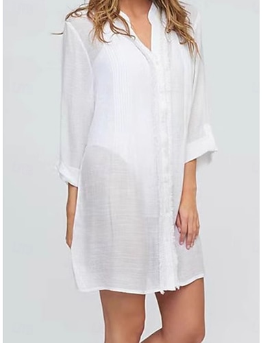 Per donna Mini Abito Abito Bianco Abito da Spiaggia Abito Camicia Copricostume Elegante Moda Classico Quotidiano All'aperto Spiaggia Vestibilità comoda Semplice Manica Lunga Colletto a Camicia Bianco