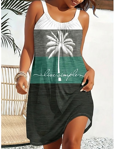 Per donna Mini Abito Abito da Spiaggia Vestito Casual Abito Sottoveste Moda Moderno All'aperto Spiaggia Vacanza Vestibilità regolare Blocco di colori Albero Senza Maniche Girocollo Verde Estate