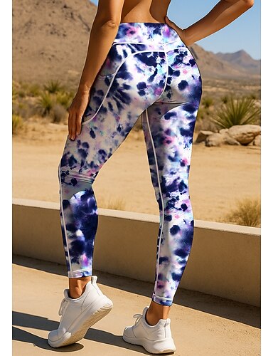 Per donna leggings da pilates Pantaloni fitness Leggings da palestra Tasche Bollo Tasche Laterali Pilates Palestra Allenamento in Palestra Pantaloni Collant Leggings Grafico Tinta a nodi Gradiente di
