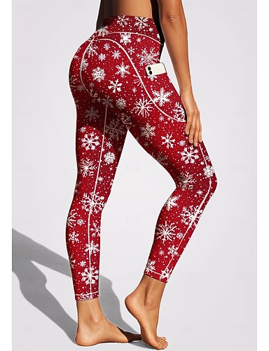 Per donna leggings da pilates Pantaloni fitness Leggings da palestra Tasche Bollo Tasche Laterali Pilates Palestra Allenamento in Palestra Pantaloni Collant Leggings Natale Borgogna Blu Fuschia Gli