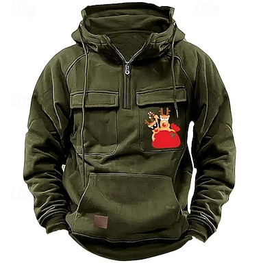 Per uomo Felpa con cappuccio Felpa con cappuccio e zip corta Nero Rosa Vino Blu Verde Con Cappuccio Animale di Natale Coulisse Tasca Sport & Outdoor Quotidiano Ferie Natale Streetwear Casual