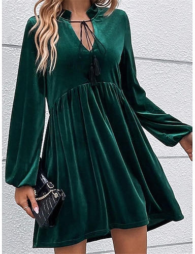 Per donna Mini Abito Abito di Natale Abito in Velluto Vestito da Festa Abito da Cocktail Elegante Moderno Festa serale Feste Ferie Vestibilità regolare Semplice Manica Lunga Scollo a V Vino Verde