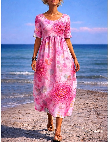 Per donna Abito maxi Abito a trapezio Abito Estivo Vacanza Casual Quotidiano Ferie Vestibilità regolare Floreale Grafico Mezza Manica Girocollo Blu Rosa Viola Verde Estate
