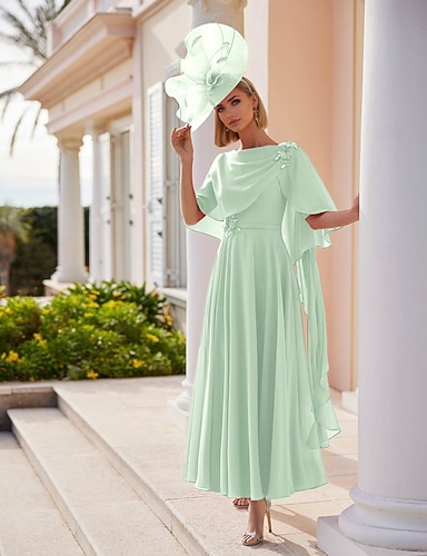 Linea ad A Abito Lunghezza alla caviglia Vestito da Festa Abito da Cocktail Abito da invitata a nozze Abito da cerimonia per signora Manica Corta Scollo a Barca Elegante Formale Chiffon Elasticizzato