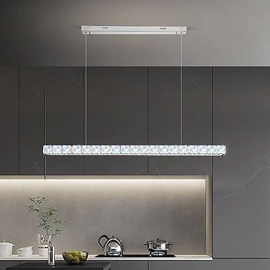 plafoniera trasparente per isola da cucina con cristallo trasparente, materiale in cristallo di rocca, struttura geometrica, forma regolare del paralume, luce a 3 colori e lunghezza di sospensione