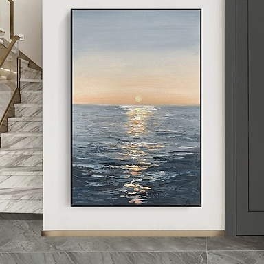 dipinti astratti testurizzati fatti a mano con alba e vista mare su tela, decorazione murale, quadri moderni per l'arredamento di casa, dipinti arrotolati senza cornice e non intelaiati
