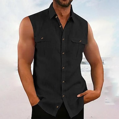 Per uomo Camicia camicia di lino Maglietta informale Camicia con bottoni Camicia di cotone Liscio Da mare Hawaiano Nero Bianco Verde Manica a 3/4 A fascia Estate Abbigliamento Tasche