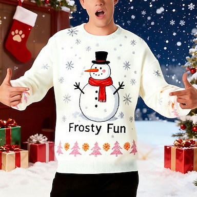 Natale Per uomo Pupazzo di neve Fiocco di neve Brutto maglione di Natale Maglione Maglione lavorato a maglia Top novità festivo Girocollo Casual All'aperto Feste Quotidiano Stampato Manica Lunga