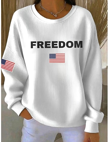 Felpa patriottica per donne del Giorno dell'Indipendenza pullover grafica casual maniche lunghe collo rotondo top regolari casual casa street blu nero bianco rosso primavera autunno