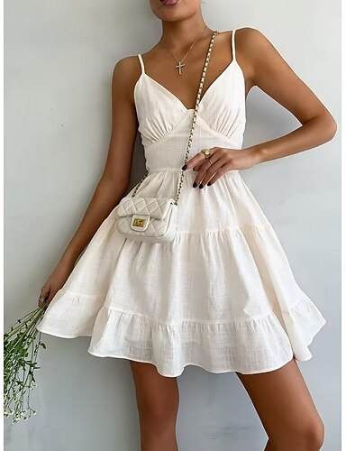 Per donna Mini Abito Finto cotone e lino Abito a Tubino Vestito Estivo Abito Bianco Essenziale Moderno Casual Quotidiano Weekend Vestibilità comoda Semplice Senza Maniche Spalline sottili Bianco