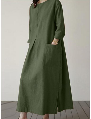 Abito corto in lino sintetico da donna in cotone lino abito dritto abito estivo casual da giorno vestibilità ampia semplice maniche 3/4 collo a V bianco grigio scuro beige grigio estate primavera