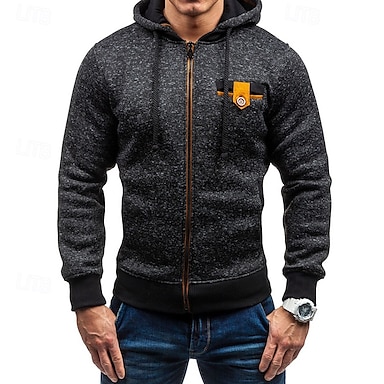 Per uomo Felpa con cappuccio a zip intera Felpa con cappuccio e zip Giacca in Pile Felpa con cappuccio in pile Nero Blu marino Cachi Grigio Con Cappuccio Blocco di colori Con zip Patchwork Sport