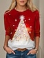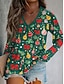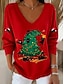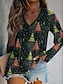 Natale Per donna Maglietta Grafico Albero di Natale Elegante Vintage Casual Manica Lunga Scollo a V Top Regolari Quotidiano Uscire Weekend Stampato Nero Rosso Verde Autunno Inverno