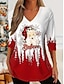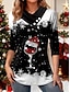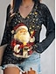 Natale Per donna Maglietta Grafico Babbo Natale Natale Vintage Elegante Casual Manica Lunga Scollo a V Top Regolari Quotidiano Stampato Bianco Rosso Primavera Autunno Inverno