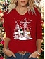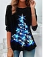 Natale Per donna Maglietta Grafico Albero di Natale Vintage Moda Elegante Manica Lunga Girocollo Top Regolari Quotidiano Weekend Stampato Blu Nero Bianco Rosso Autunno Inverno