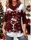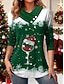 Natale Per donna Maglietta Grafico Babbo Natale Natale Vintage Elegante Classico Manica Lunga Scollo a V Top Regolari Quotidiano Stampato Rosso Verde Autunno Inverno