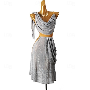 vestito da ballo salsa latino con cristalli separati/strass, performance da donna, senza maniche, spandex, organza/sala da ballo