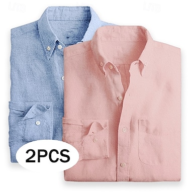 Per uomo Camicia Camicia di lino Camicia Estiva Camicia button-down Camicia casual Semplice Vacanza Quotidiano Bianco + rosa Bianco + Verde Verde + rosa Pink + Blu Manica Lunga Bavero Estate Primavera