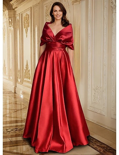 Linea ad A Lunghezza alla caviglia Vestito da Festa Abito da Cocktail Abito Derby Abito da cerimonia per signora Manica Corta Scollo a V Elegante Vintage Ospite di nozze Ricevimento di matrimonio