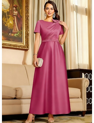 Linea ad A Lunghezza alla caviglia Vestito da Festa Abito da Cocktail Abito da invitata a nozze Abito da cerimonia per signora Manica Corta Girocollo Elegante Minimalista Formale Ospite di nozze Raso