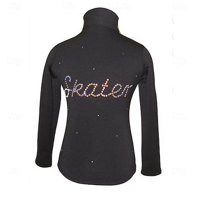 Giacca in pile per pattinaggio artistico Per donna Ragazze Pattinaggio sul ghiaccio Giacca Top Nero Patchwork Spandex Elasticizzato Allenamento Competizione Vestiti da pattinaggio sul ghiaccio Calore