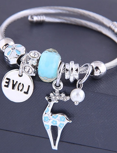 incantevole bracciale in argento con ciondolo a forma di amore e ciondolo a forma di renna, bracciale regolabile con perline di cristallo per donna