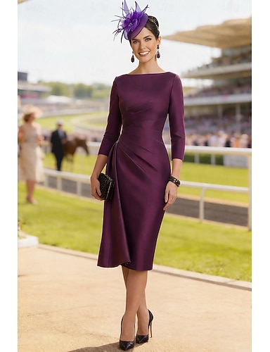 Tubino Colonna Lunghezza al ginocchio Vestito da Festa Abito da Cocktail Abito da invitata a nozze Abito da cerimonia per signora Manica 3/4 Senza Spalle Elegante Ospite di nozze Raso con Arricciatura