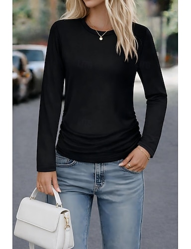 Per donna Maglietta Tinta unica Vintage Moda Casual Manica Lunga Girocollo Top Regolari Quotidiano Uscire Blu Nero Bianco Rosso Cachi Primavera Autunno Inverno