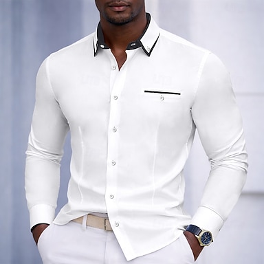 Per uomo Camicia Camicia elegante Semplice Matrimonio All'aperto Rosa chiaro Nero Bianco Verde chiaro Manica Lunga Collo ripiegato Primavera Autunno Abbigliamento Puro