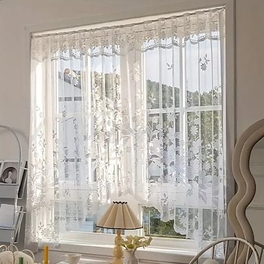 tende floreali trasparenti per finestre, pannelli di tende in pizzo, drappeggi in voile ricamati, tende filtranti per la privacy per camera da letto, soggiorno, arredamento per la casa