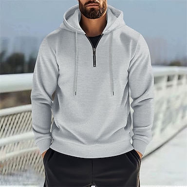 Per uomo Felpa con cappuccio Felpa con cappuccio e zip corta Felpa con cappuccio in pile Nero Bianco Vino Blu marino Cachi Con Cappuccio Semplice Coulisse Zip a un quarto Sport & Outdoor Quotidiano