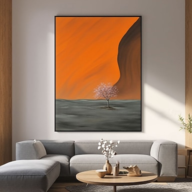 Dipinto ad olio astratto minimalista dipinto a mano al 100%, paesaggio desertico con texture, arte murale d'ingresso, dipinto originale di paesaggio desertico su tela.